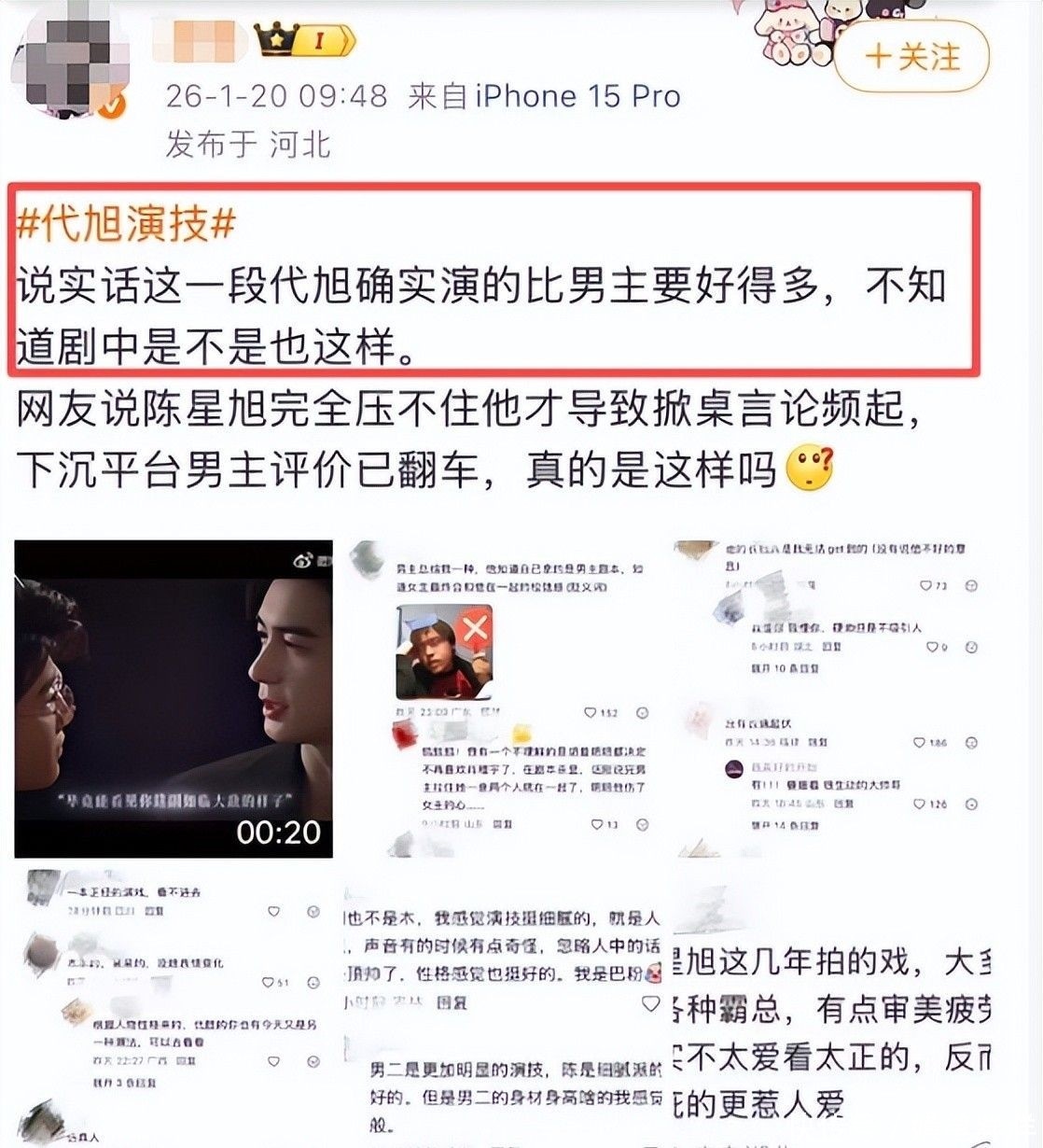 1. 2026年1月20日,微博热榜上《代旭演技》这个词条已经连续霸榜七天,热度非但没有回落,反而持续走高。